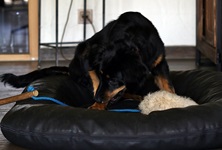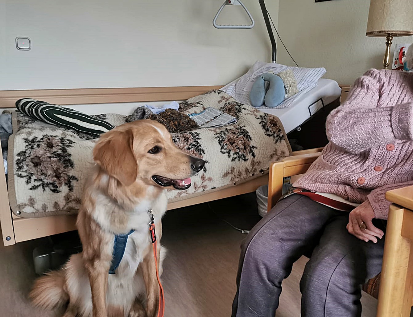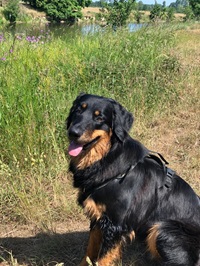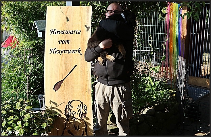 Wir sind mächtig stolz auf unseren Amarok, der so vielen alten und dementkranken Menschen ein Lächeln auf das Gesicht zaubert.... und ja, das geht mit einem gut sozialisierten und ausgebildeten Hovawart sehr wohl. Michaela hatte bereits zu Beginn diesen Wunsch geäußert. Daraufhin haben wir ganz genau hingeschaut, welcher der 9 Welpen sich am besten eignen würde und ihn dann ganz gezielt darauf vorbereitet. So hat er bei und schon einen Rollator und Rollstuhl kennen gelernt, Duldungsübungen gehörten auch dazu.