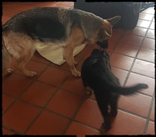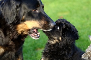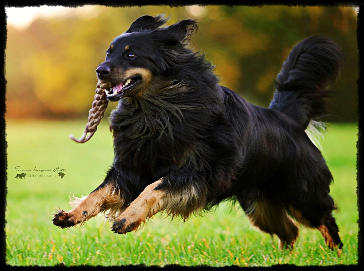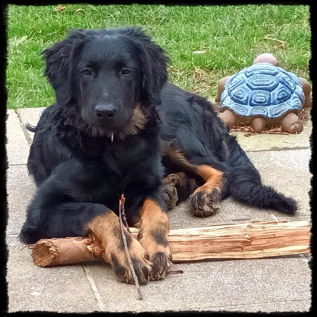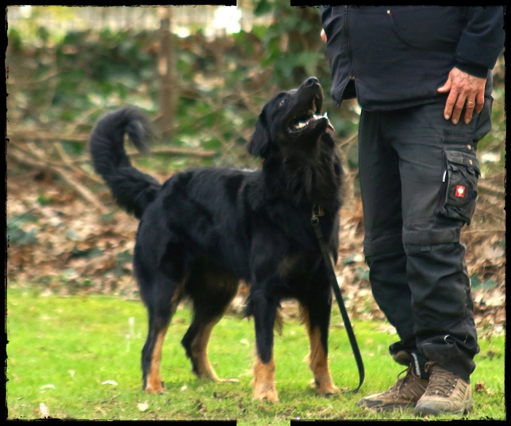 Erik befindet sich seit Dezember 2018 in unserer Familie. Ja ihr habt richtig gerechnet, er kam mit 1,5 Jahren zu uns, da sein früheres Frauchen leider unheilbar erkrankt war. Erik ist von klein auf an stark durch Frauen geprägt (Frauchen und Trainerin) und als er zu uns kam, änderte sich seine kleine große Welt komplett. Natürlich hatte er auch wieder ein Frauchen, nur das Sagen hatte Herrchen. Nach einer gewissen Eingewöhnungszeit haben wir dies jedoch sehr gut gemeistert. Der Umgang mit dem menschlichen Welpen (meinen Sohn) der zu dem Zeitpunkt 11 Jahre alt war, stellte absolut kein Problem dar. Erik verstand sich auf Anhieb auch wunderbar mit den beiden Hundedamen des Hauses. Zu fremden Menschen und anderen Hunden ist er außerhalb seines Reiches immer sehr freundlich bis desinteressiert. Er spielt für sein Leben gern, sei es mit der Weißwurst, einem Ball oder Sonstigem, was er zu seiner Beute machen kann. Aufgrund seiner Begeisterung fürs Spiel, bringt und gibt er seine Beute freudig zurück. Erik ist ein sehr triebstarker Rüde, der Familienanschluss sucht und in der Familie seine Ruhe findet. Zur Nacht zieht er sich gerne zurück. Zuhause zeigt er einen dem Hovawart entsprechendes Territorialverhalten, besonders wenn Herrchen nicht zu Hause ist. Grundsätzlich ist Erik ein freundlicher Rüde, der es liebt zu spielen, schnell lernt und gerne alles richtig machen möchte. Er ist ein richtiger Schatz und wir können uns ihn nicht mehr wegdenken......