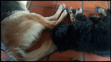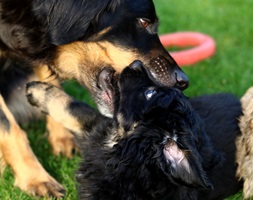 Barack-Basko ist nun knapp 5 Monate alt. Wir freuen uns sehr, dass er seine Anlagen so toll umsetzt und Jürgen war mächtig stolz.... Nach einer dreistündigen Fahrt war Basko das erste Mal auf einem fremden Platz, mit einem fremden Helfer, seine erste Einheit bei stürmischem Wetter im dunkeln. Die Videos zeigen ihn am nächsten Morgen. Er hat sich auch von 20 Zuschauern, die mit auf dem Platz standen nicht ablenken lassen und so konnte er gut dazu beitragen, Nachwuchshelfern die Aufbauarbeit mit einem sehr jungen Hund zu übermitteln.