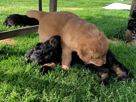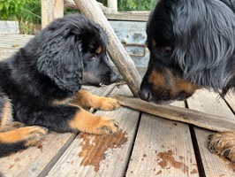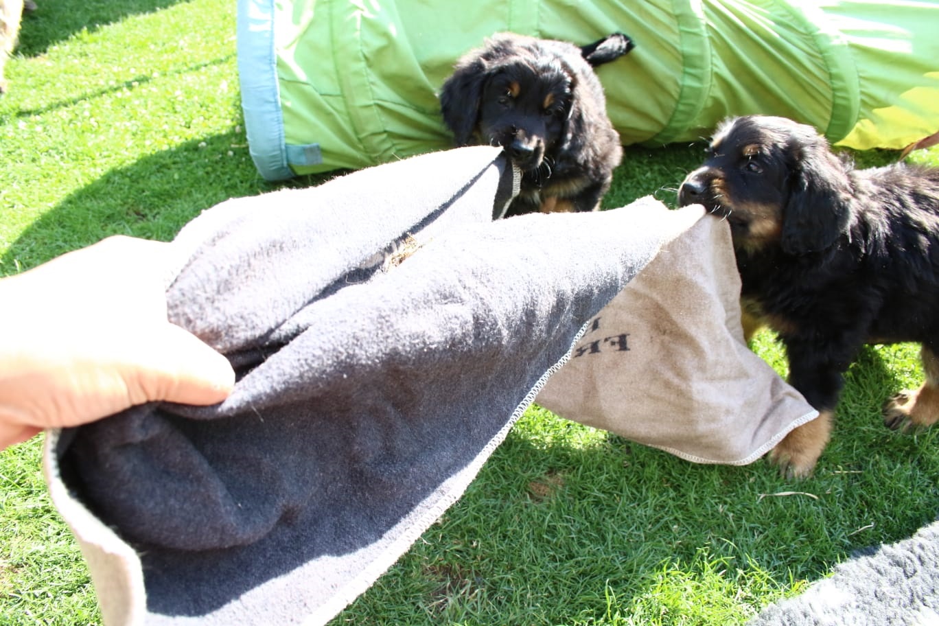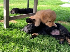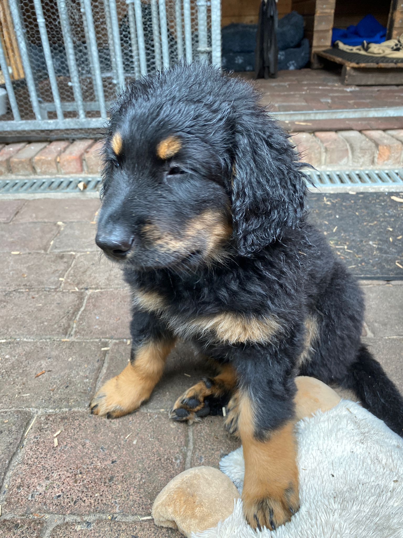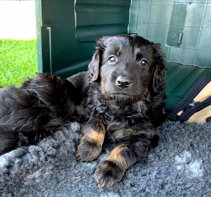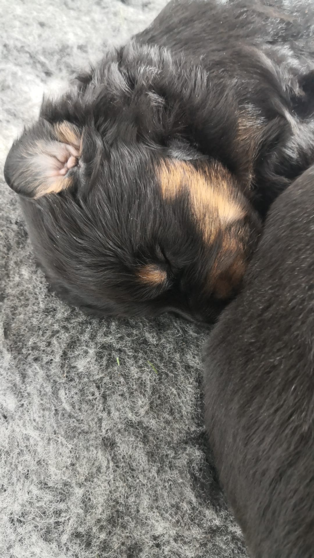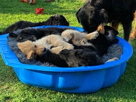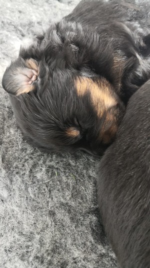 Endlich sind sie da. So lange ersehnt und gewartet. 4 Rüden, eine Hündin. Ein Rüde ist Blond, der Rest hat die Farbe schwarzmarken (schwarz mit braunen Abzeichen)