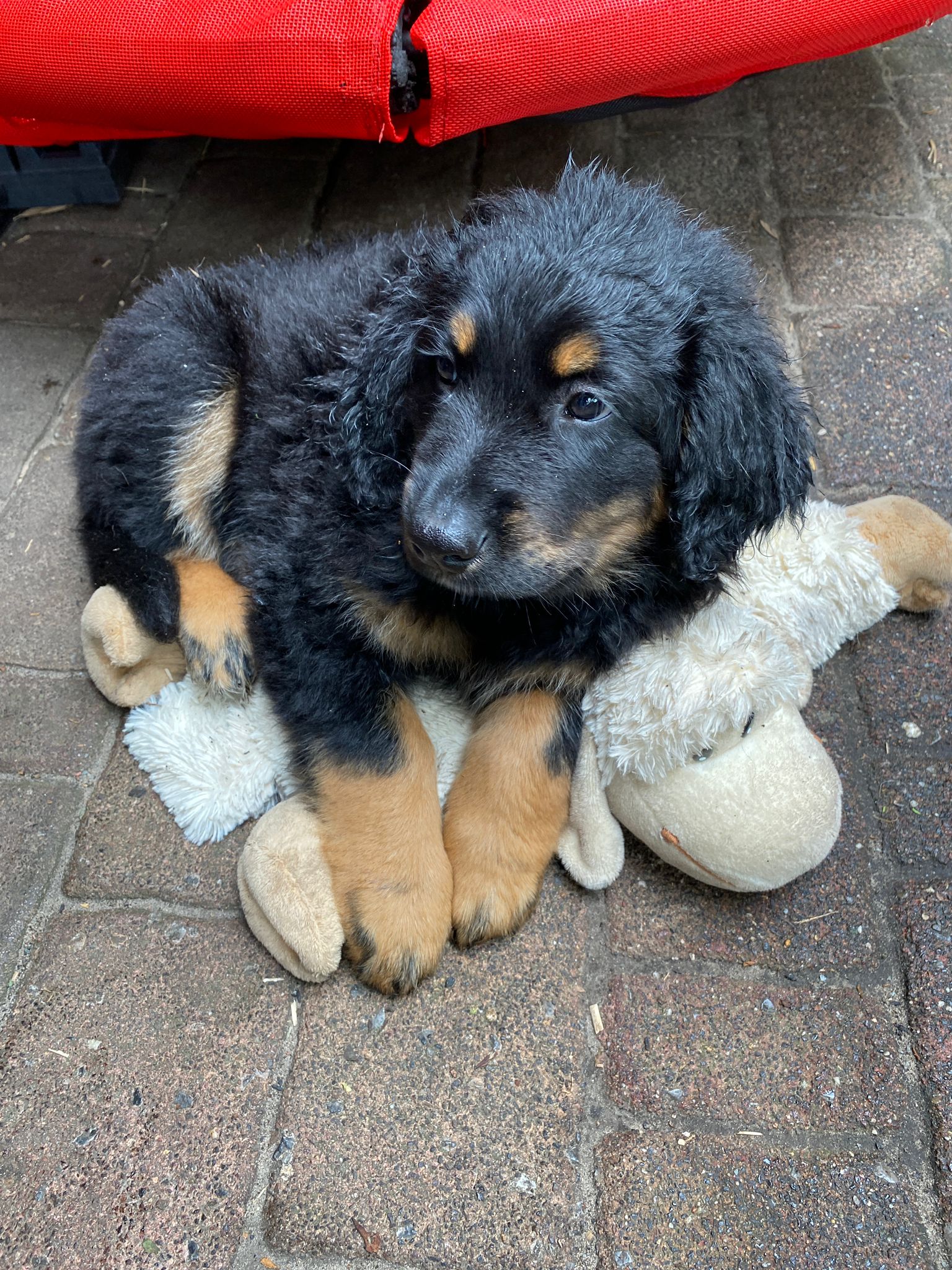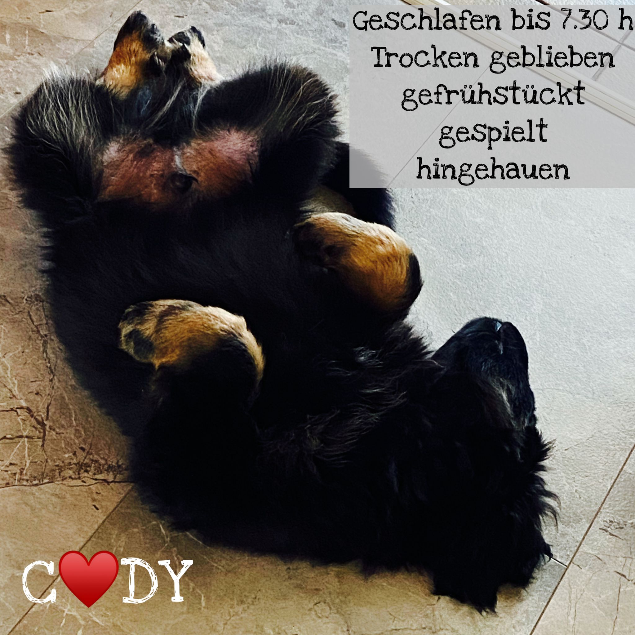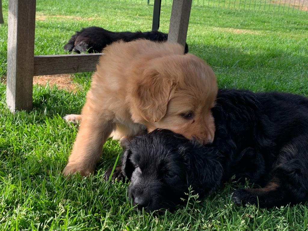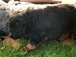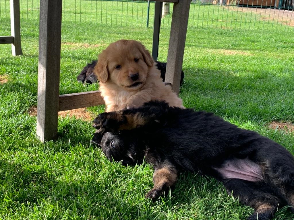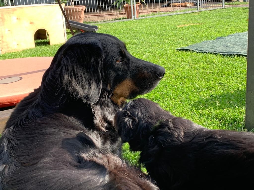 Endlich sind sie da. So lange ersehnt und gewartet. 4 Rüden, eine Hündin. Ein Rüde ist Blond, der Rest hat die Farbe schwarzmarken (schwarz mit braunen Abzeichen)