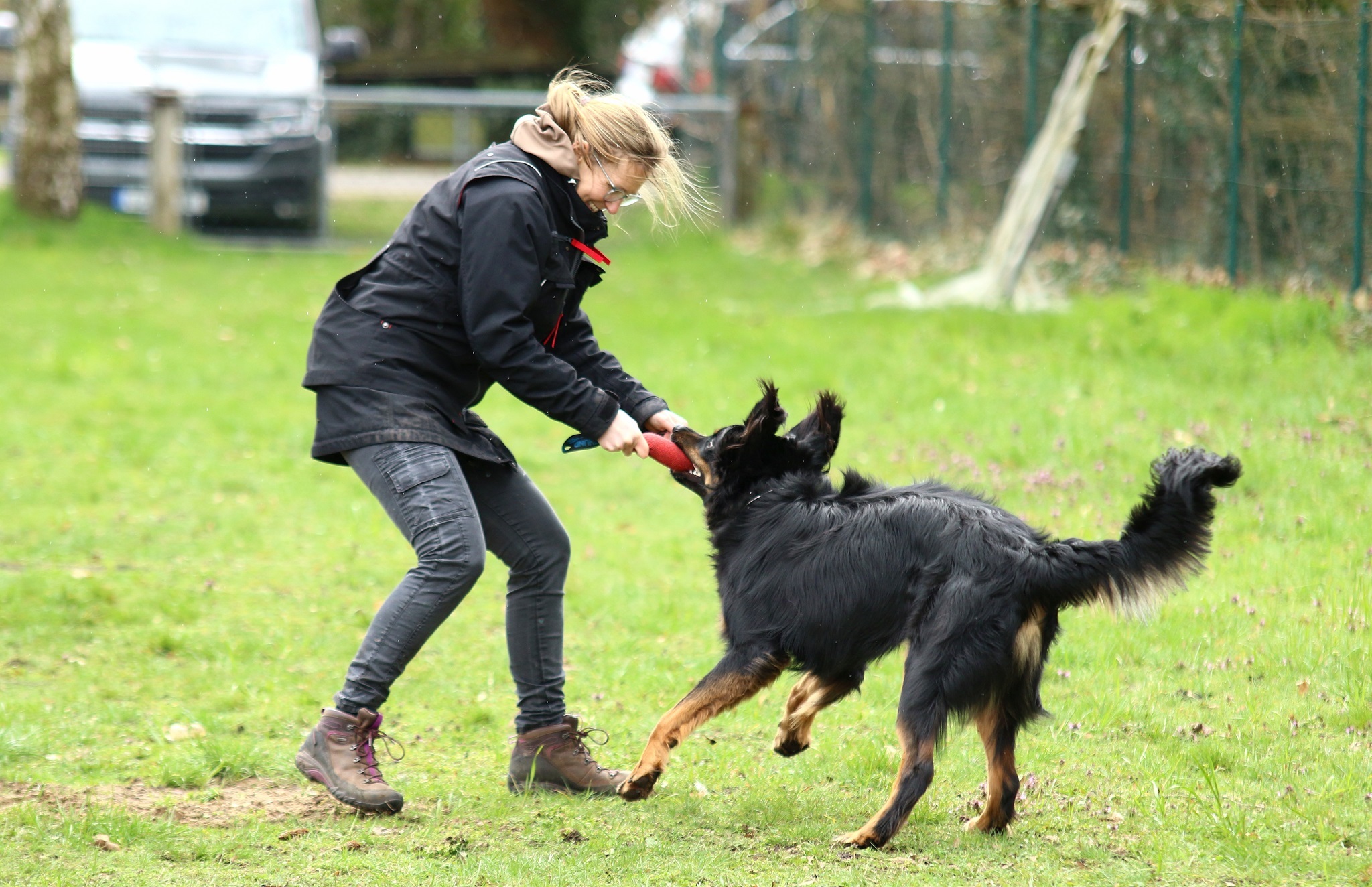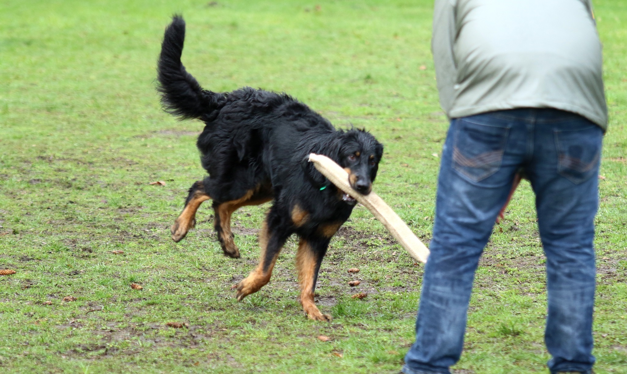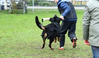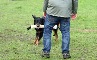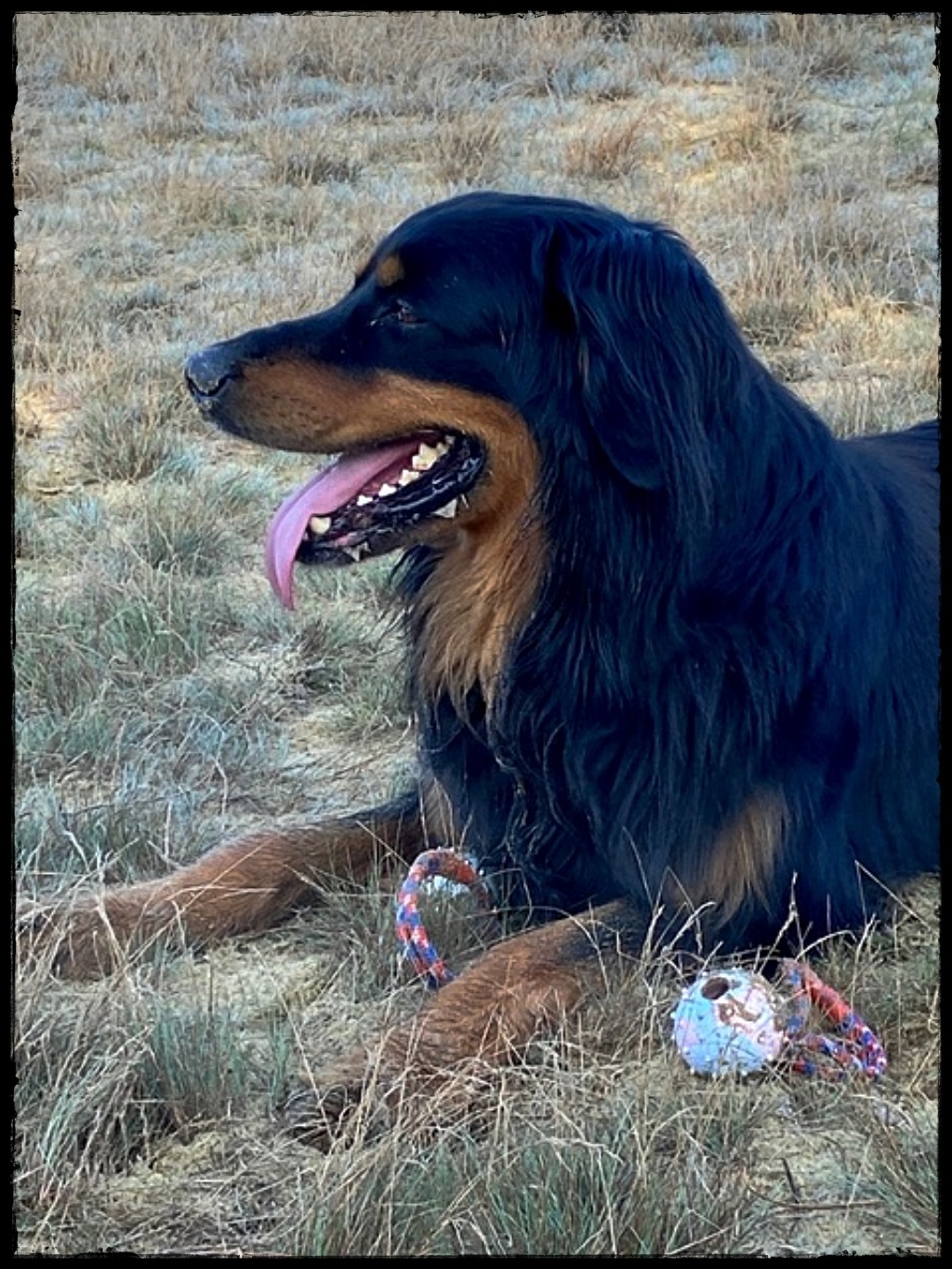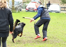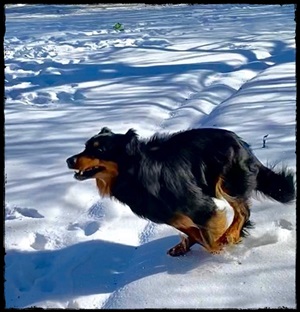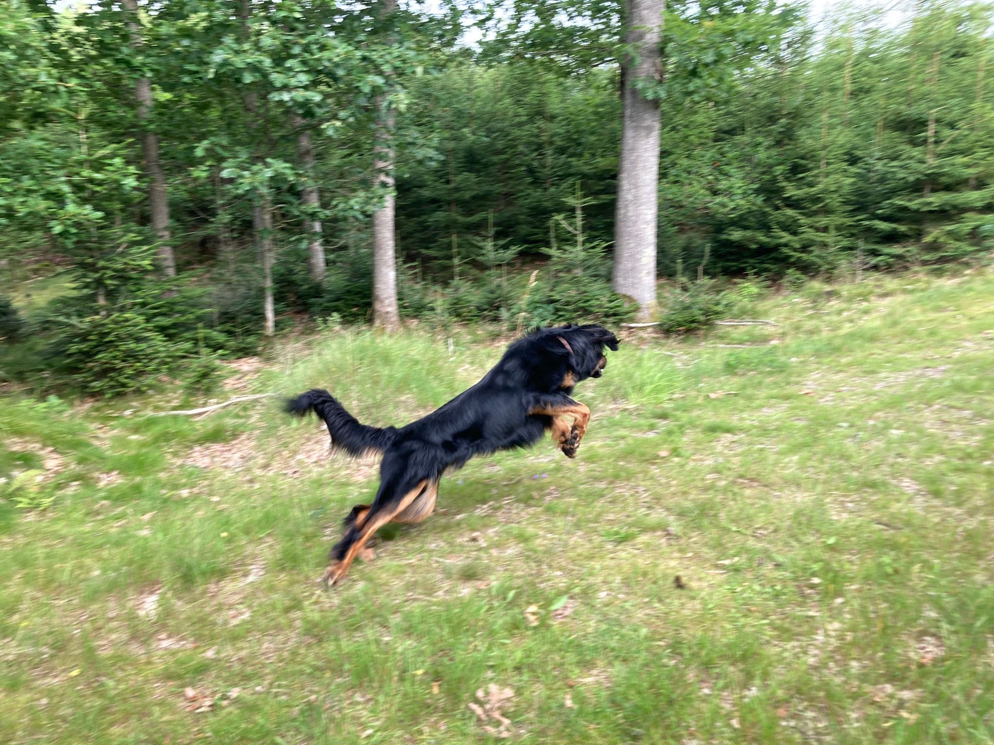 Ein 2,5 Jahre alter schwarzmarkener mittelgroßer, rassetypischer Rüde, von mittlerer Knochenstärke und mit ansprechendem Kopf. Vorzüglich gesetzte, flammende Marken, kleiner Brustfleck, Behang ohne Beanstandung, mittelbraune Augen, anliegende Lefzen, vollständiges Scherengebiss, P1 doppelt. Hamonische obere und untere Linie, korrekte Rute und einwandfreie Winkelungen. Die Läufe sind gerade gestellt. In der Bewegung zeigt sich der Rüde etwas hektisch, weshalb er sein Gangwerk nicht wirklich entfalten kann. Er läuft aber flüssig. Gepflegtes schichtes glänzendes Haarkleid. Vorzüglich am Futter. Er zeigt sich freundlich.