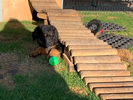 Es wurden keine zuchtausschließende Fehler gefunden. Der Zustand der Hündin und Welpen war einwandfrei und voraussichtlich werden sie schon bald die Gewichte verdoppelt haben. Sie drücken sich schon ordentlich hoch und laufen bereits einige Schritte. Sie sind sehr lebhaft und agil. Wir sind alle sehr begeistert von den 'Big Five' .