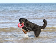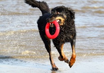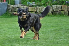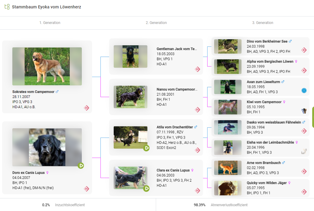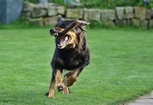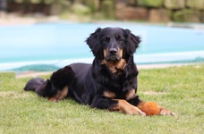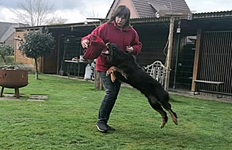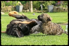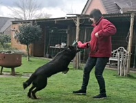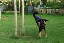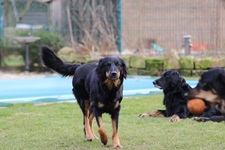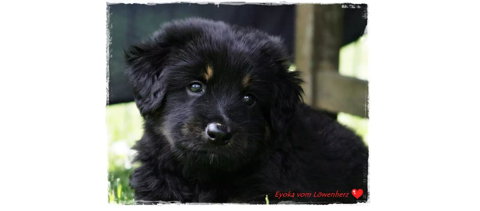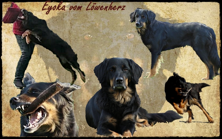 Eyoka ist eine sehr schöne, sichere, unbefangene und aktive Hündin. Sie hat keinerlei Probleme mit Menschen, anderen Hunden oder Tieren. Sie hat ihren ersten Wurf überzeugend groß gezogen und obwohl der A-Wurf außerordentlich lebhaft manchmal geradezu renitent, hat sie die Erziehung gelassen und ruhig vollzogen ohne die Welpen in ihrer Entwicklung zu behindern. Trotzdem hat sie viel mit ihnen gespielt. Es war wirklich ein Erlebnis ihr dabei zuzusehen.