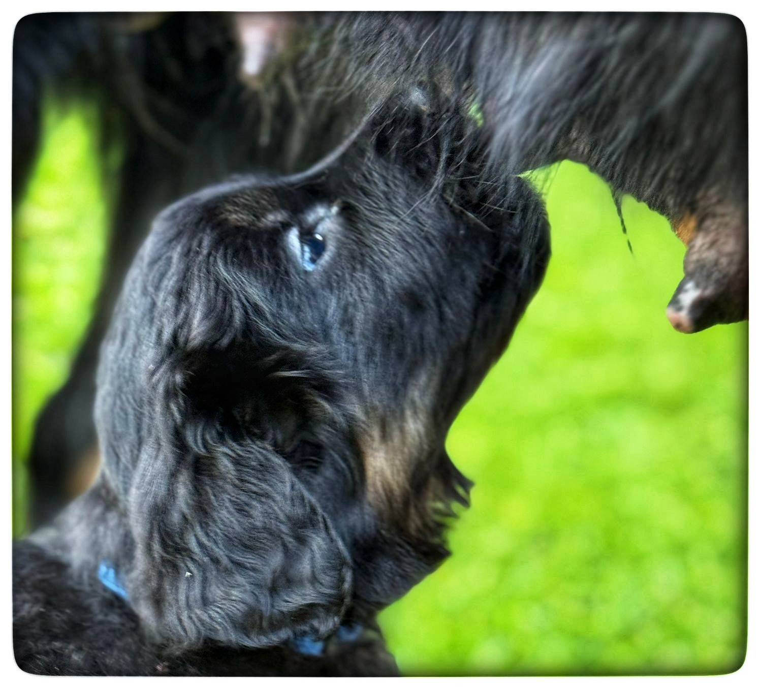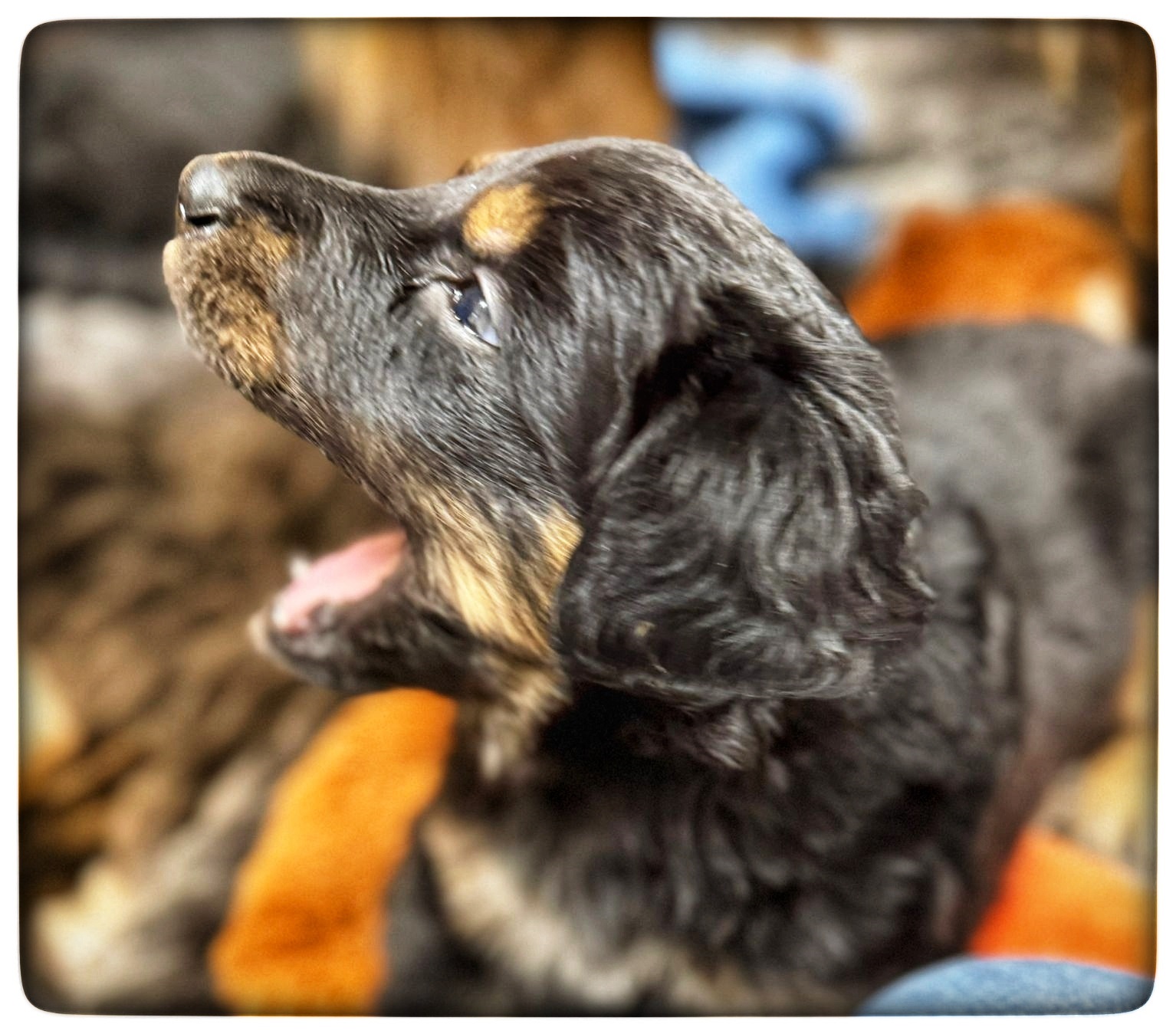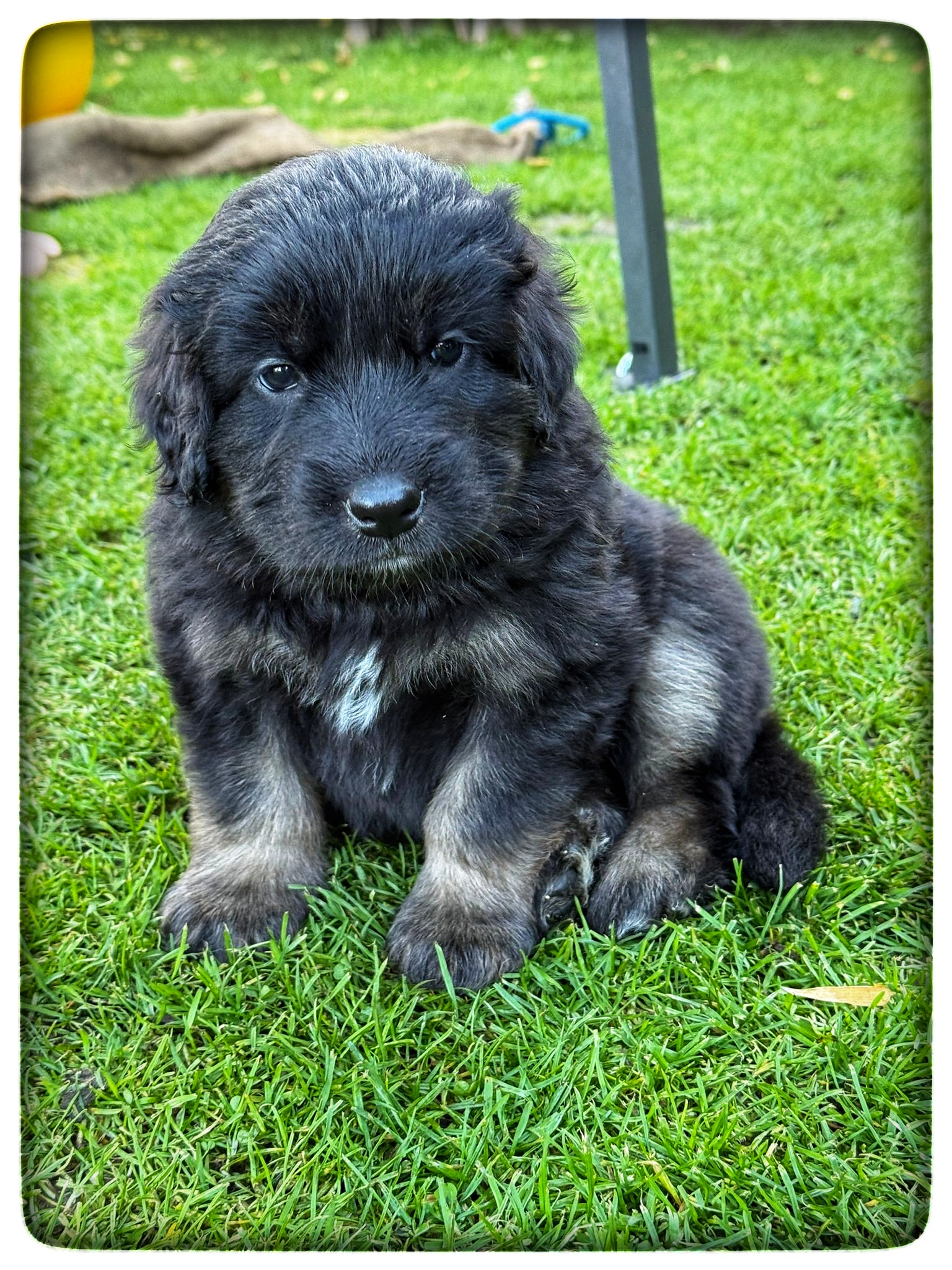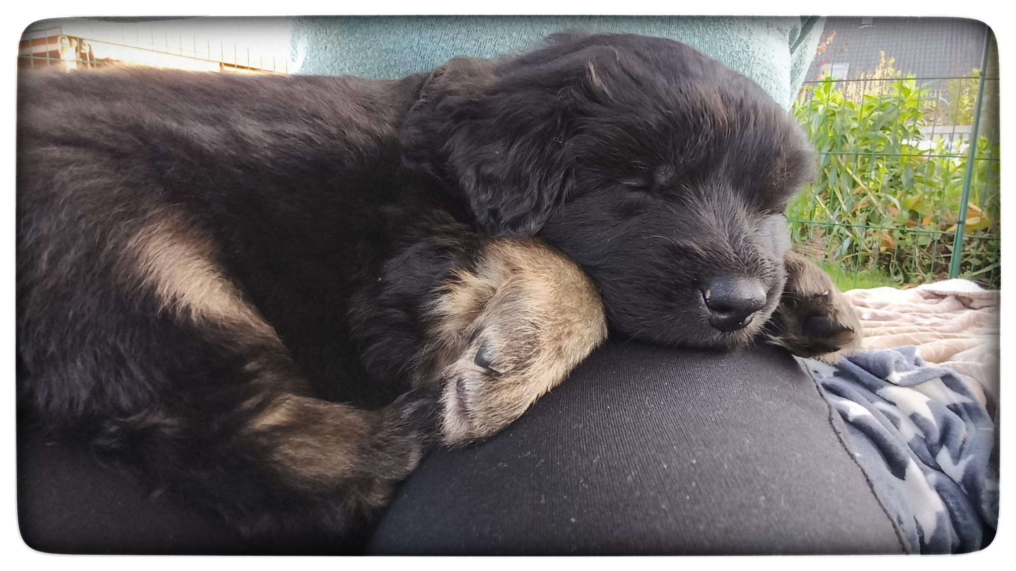 Die Welpen entwickeln sich prächtig und meistern mutig die Herausforderungen, die wir ihnen in dem Auslauf zur Verfügung stellen. Neugierig wird geäugt, was wir ihnen bereitstellen. Natürlich sind die Dinge dem Alter entsprechend angepasst.