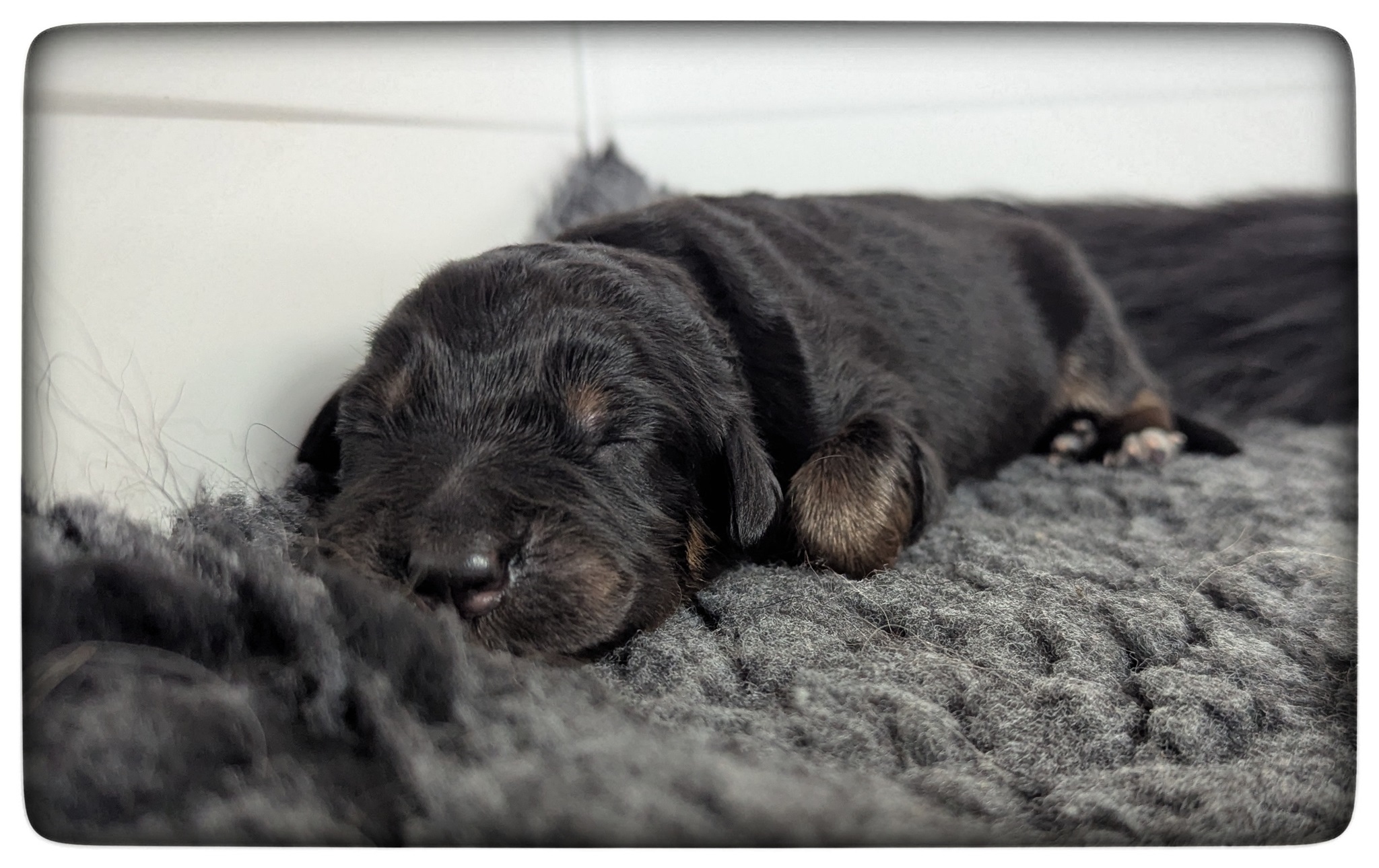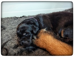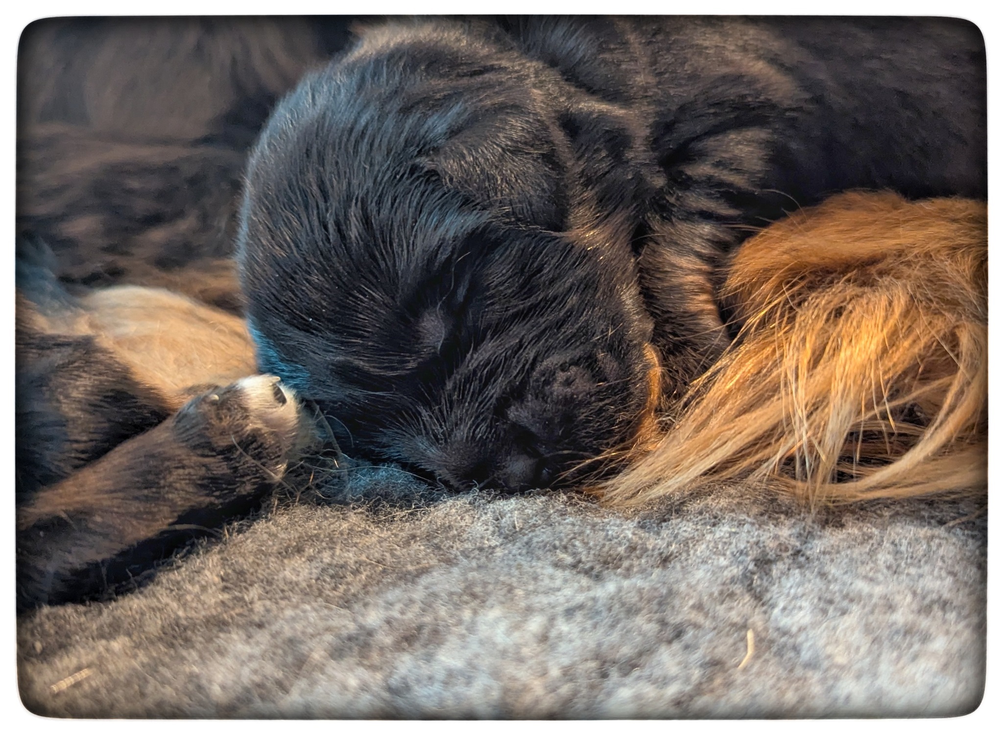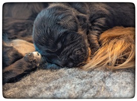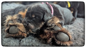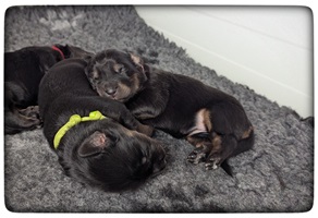 Unsere Zuchtwartin war sehr beeindruckt von der Ruhe und Gelassenheit die Cara ausstrahlt. Sie versorgt ihre Welpen sehr zuverlässig und ohne jede Hektik. Selbst wenn die Welpen mal unruhig werden oder lauthals Protestieren, leibt sie sehr souverän. Entsprechend sind auch die Zunahmen. Wir sind sehr begeistert von ihrem Verhalten. Bisher haben das zwar alle unsere Hündinnen sehr gut gemacht aber Cara ist da echt nochmal ne andere Hausnummer.