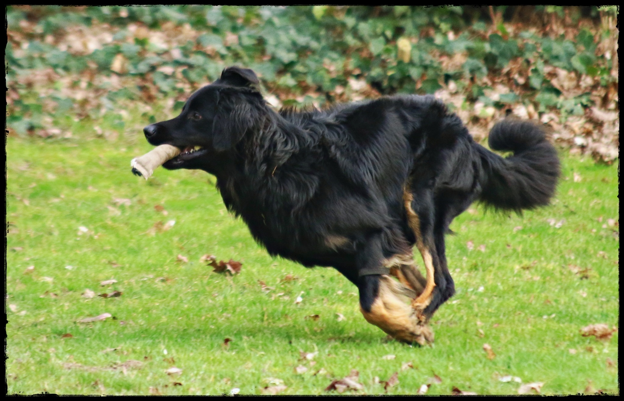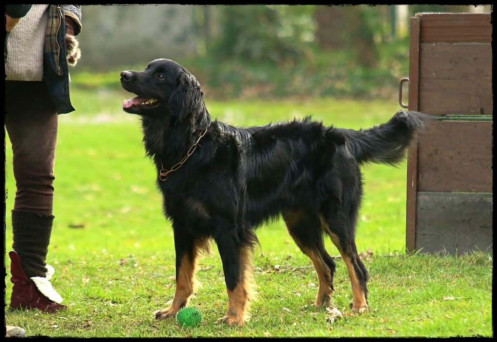 Erik befindet sich seit Dezember 2018 in unserer Familie. Ja ihr habt richtig gerechnet, er kam mit 1,5 Jahren zu uns, da sein früheres Frauchen leider unheilbar erkrankt war. Erik ist von klein auf an stark durch Frauen geprägt (Frauchen und Trainerin) und als er zu uns kam, änderte sich seine kleine große Welt komplett. Natürlich hatte er auch wieder ein Frauchen, nur das Sagen hatte Herrchen. Nach einer gewissen Eingewöhnungszeit haben wir dies jedoch sehr gut gemeistert. Der Umgang mit dem menschlichen Welpen (meinen Sohn) der zu dem Zeitpunkt 11 Jahre alt war, stellte absolut kein Problem dar. Erik verstand sich auf Anhieb auch wunderbar mit den beiden Hundedamen des Hauses. Zu fremden Menschen und anderen Hunden ist er außerhalb seines Reiches immer sehr freundlich bis desinteressiert. Er spielt für sein Leben gern, sei es mit der Weißwurst, einem Ball oder Sonstigem, was er zu seiner Beute machen kann. Aufgrund seiner Begeisterung fürs Spiel, bringt und gibt er seine Beute freudig zurück. Erik ist ein sehr triebstarker Rüde, der Familienanschluss sucht und in der Familie seine Ruhe findet. Zur Nacht zieht er sich gerne zurück. Zuhause zeigt er einen dem Hovawart entsprechendes Territorialverhalten, besonders wenn Herrchen nicht zu Hause ist. Grundsätzlich ist Erik ein freundlicher Rüde, der es liebt zu spielen, schnell lernt und gerne alles richtig machen möchte. Er ist ein richtiger Schatz und wir können uns ihn nicht mehr wegdenken......